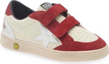 Inspired by '80s American college–basketball shoes, this low-top sneaker is lightly scuffed and smudged to look like your kid's already made the varsity squad. Velvety suede contrasts against crackled leather for a dynamic finish.