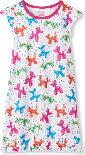 Sweet dreams and leisurely lounge seshes await your kiddo in this ruffled nightgown cut from soft, breathable jersey in a colorful print that turns any night into a fiercely fun slumber party.