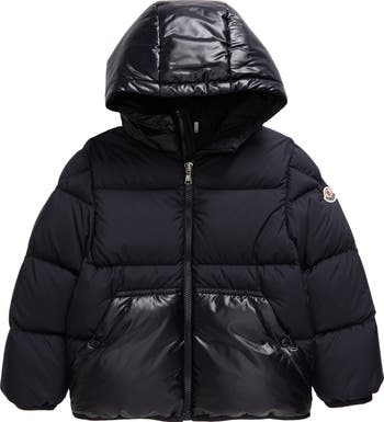 Designed to deliver signature Moncler warmth, this kid-sized puffer jacket that combines mixed-finish fabrics fuses fun and protection from the elements.