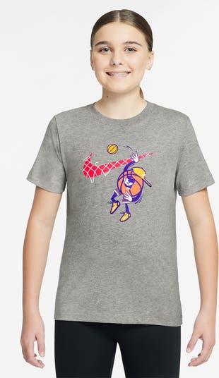Shooting and scoring bring on-court energy to your kid's off-court fun in a T-shirt made for playing or relaxing in the comfort of soft, breathable cotton.