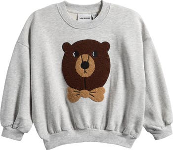 A slouchy fit keeps your kid feeling cozy in this soft organic-cotton French terry pullover sweatshirt fronted by a loopy chenille bear appliqué.