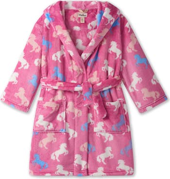 Hatley Kids' Beautiful Horses Hooded Fleece Robe, Alternate, color, Fuchsia Pink
