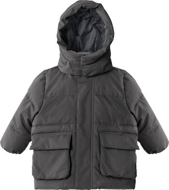 A removable hood offers your tot extra coverage on the chilliest days in this water-repellent puffer jacket.