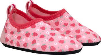 Sweet berries detail this flexible crib shoe made from a stretch knit with plenty of room for growing toes.