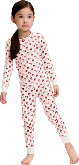 An allover bow print sweetens these cozy-cute long-sleeve pajamas made from supersoft pima cotton that spells sweet dreams for your kiddo.