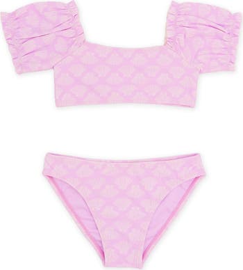 This ultra-cute two-piece swimsuit with a seashell print and frilly sleeves is made from fast-drying, breathable fabric with four-way stretch.