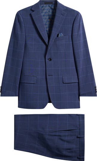 A blue windowpane-check pattern keeps your child looking dapper and smart in a versatile suit made with a touch of stretch for comfort at any formal occasion.
