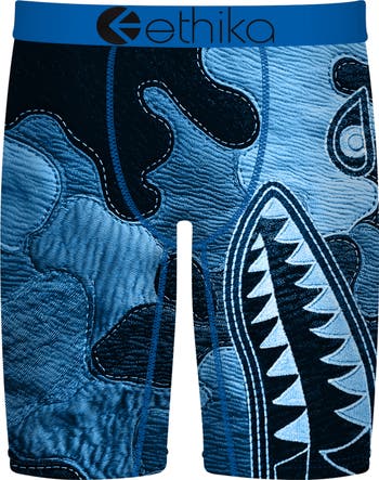 A curvy patchwork of denim blues emboldens a pair of kid-size boxer briefs made with a stretchy, supportive fit that won't roll or bunch. The soft waistband ensures stay-put comfort in any activity.