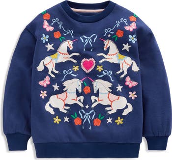 They'll be serving whimsy and sass in this breathable cotton sweatshirt made with a smattering of magical appliqués.