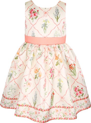 Your favorite partygoer will love to twist and twirl in this fit-and-flare mikado party dress featuring a delightful border print.