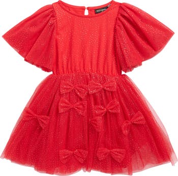 Rock Your Kid Kids' Bow Bow Glitter Tulle Dress, Main, color, Red Candy