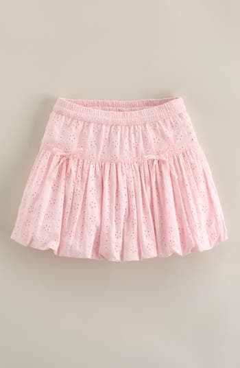 Little bows detail the front of this bubble-hem skirt made of lightweight cotton featuring embroidered eyelets all over.