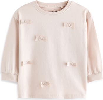 Tonal bows add a sweet touch to a relaxed long-sleeve T-shirt made from pure cotton.
