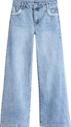Tractr Kids' Bow Pocket Straight Leg Jeans, Alternate, color, Light Indigo