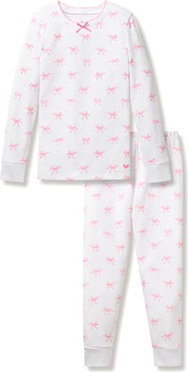 Supersoft pima cotton spells sweet dreams for your little Valentine in these long-sleeve fitted pajamas made to charm with a bow print and scalloped neck.