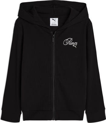 Keep your kiddo cozy in a softly ribbed hoodie stitched with a scripted logo.