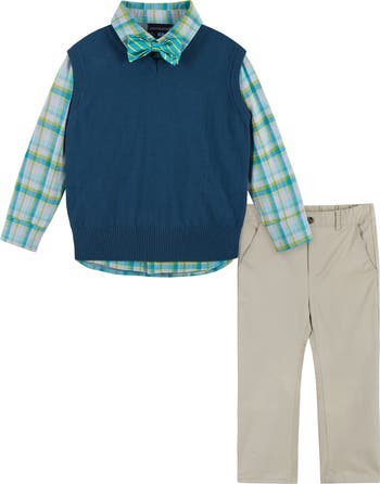 Get them event-ready in no time with this sharp set that includes a button-up shirt, sweater vest, pants and bow tie.