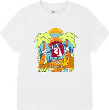 Boxy the Nike shoebox fires up the rollerblades and enjoys a day in the sun on a T-shirt made for kids who like to ride or relax in the comfort of soft, breathable cotton-blend jersey.