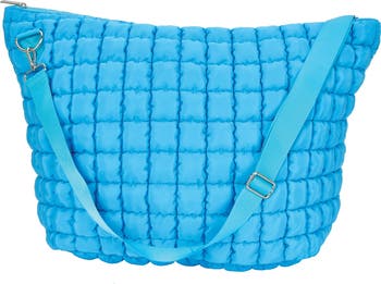 Your kiddo will be ready for a weekend getaway with this bright and cushy quilted bag in their collection.
