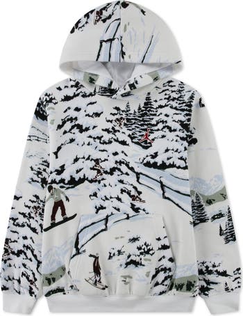 MJ's game-winning energy goes off-court in a fleece hoodie that's covered in skiers, slopes and snowboarders and sized with plenty of room for your kid to layer in the cold. Perfect for playtime, downtime and every time in between, it's a great choice for any active wardrobe.