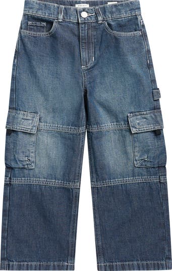 Keep their essentials easy to access in this pair of baggy cargo jeans cut from nonstretch denim and popped with plenty of pockets.