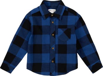 MILES THE LABEL kids' Buffalo Plaid Organic Cotton Flannel Button-Up Shirt, Main, color, Royal Blue