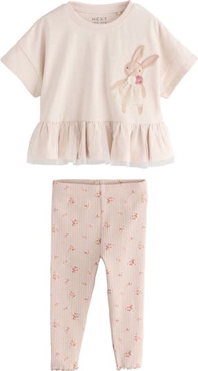 Kids' Bunny Appliqué Peplum T-Shirt & Rib Leggings Set
