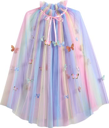 Fluttery butterfly appliqués and rainbow hues enhance the enchantment of this cape that will offer your kiddo hours of playtime fun.