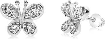 Twinkling crystals sparkle on adorable butterfly stud earrings made especially for little ones from premium, hypoallergenic materials.