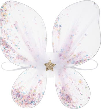 Let them have their flights of fashion with this wearable pair of butterfly-shaped fairy wings set asparkle with glittering accents.