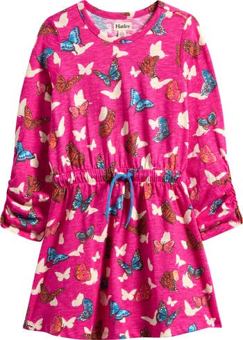 A whimsical print lends kid-approved charm to this easy-on dress fitted with a stretchy elastic waist.