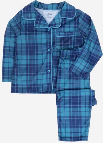 Leveret Kids Button-Front Flannel Printed Holiday Pajama Set, Main, color, Plaid Blue & Navy