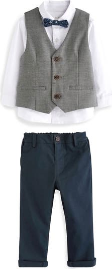 Your little one is ready for their next special occasion in this dapper set that comes with a button-up shirt, a vest, cuffed pants and an adorable bow tie.