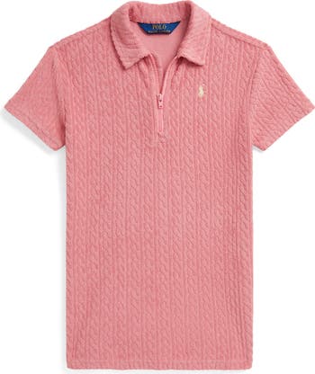 A petite polo pony authenticates a cabled French terry polo your kiddo will love.