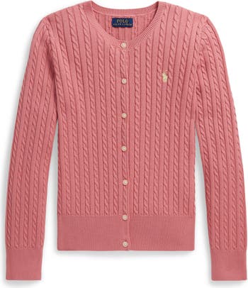 An embroidered polo rider lends heritage detail to this cable-knit cardigan that offers exceptional comfort for your stylish kiddo.