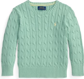 Soft cabling brings classic detailing to a sweater knit from breathable cotton and sized for kids who like to stay comfortable when they're looking nice. It's easy to wear alone or layered, and it's machine-washable so you can keep it clean right at home.