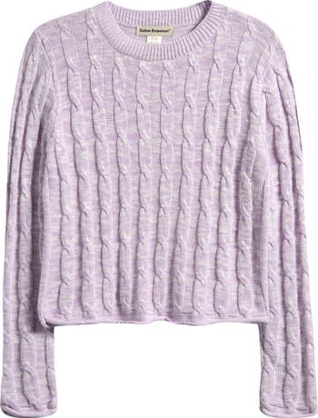 They'll love the cool cable-stitch design that lends chunky dimension to this cotton-enriched sweater.