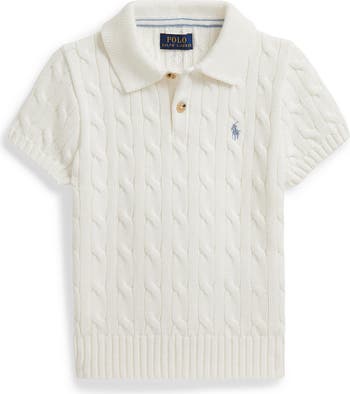 Soft cabling brings traditional detailing to a sweater knit from breathable cotton with a classic polo collar to keep your kid looking smart and feeling comfortable. It's easy to wear alone or layered depending on the temperature or the occasion, and it's machine-washable so you can keep it clean right at home.