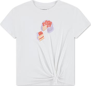 Satisfy your favorite sweet tooth's craving for something cute and comfy with this breathable cotton-blend T-shirt hiked up at one side with a knotted hem.