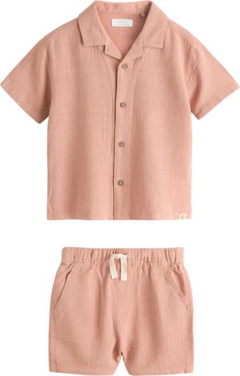 Your kiddo will be the most fashionable one at the resort in this camp shirt and shorts set that brings summery vibes with its blend of sustainable fabric and breezy linen.