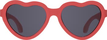 Flexible rubber frames and shatter-resistant lenses stand up to all kinds of activities in kid-friendly sunglasses featuring a heart-shaped profile.