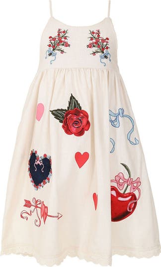 Warm days beckon your little trendsetter in this flowy sundress blooming with whimsical embroidery and topped with slender straps.