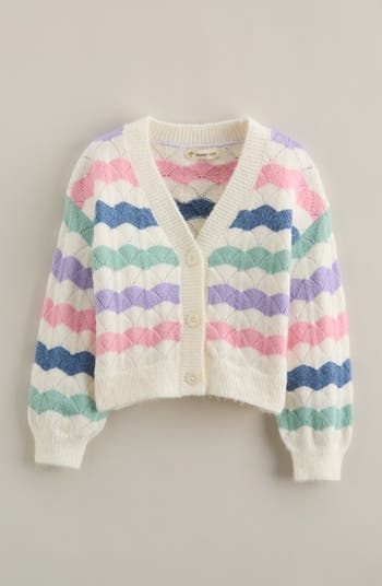 Playful yet refined, this cardigan’s scallop-stitch design transforms a classic layer into a wearable work of art for mini trendsetters.