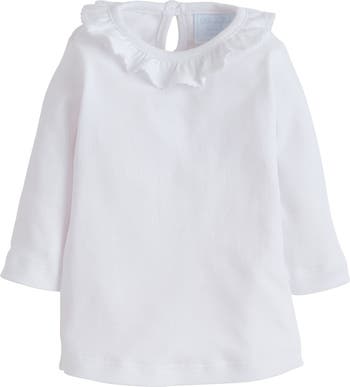 - Little English basics are known for their durability wash after wash! This Caroline Knit Blouse features a ruffled collar deatil perfect for layering.