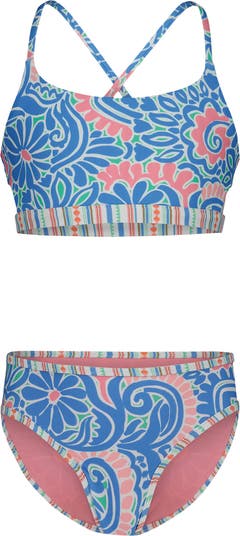 Get your kiddo ready to catch a wave in this reversible two-piece swimsuit featuring a cutout bikini top and matching bottoms.