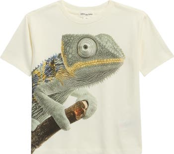 An oversized and incredibly realistic screenprint of a chameleon pops from this soft cotton T-shirt they'll want to wear every day.