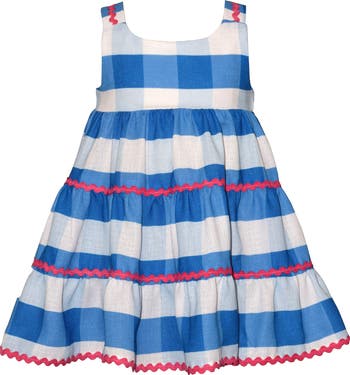 Allover checks amp up the cheerful vibes of this sweet sleeveless dress accented with playful rickrack trim.