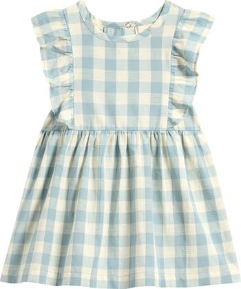 They'll be feeling breezy and looking cute in this check-patterned dress made with flutter sleeves and a flared skirt.