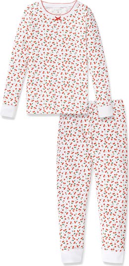 Supersoft pima cotton spells sweet dreams for your child in these long-sleeve fitted pajamas sweetened with about a bushel of red cherries.