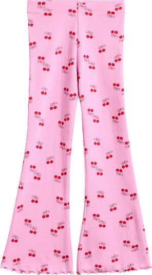 Stretch-kissed cotton keeps kids comfy from school days to impromptu dance parties in these finely ribbed leggings featuring kicky flared hems sweetened with lettuce-edged trim.